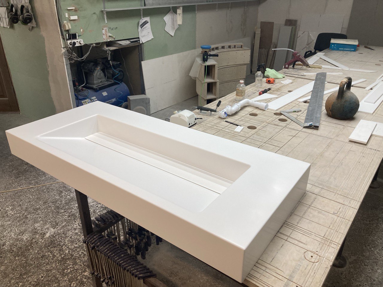 Если проект не слишком сложный, мы объединяем изготовление, монтаж, доставку и установку в один слаженный процесс. Это позволяет сократить сроки и быстрее получить готовое изделие из акрилового камня, полностью готовое к использованию.
